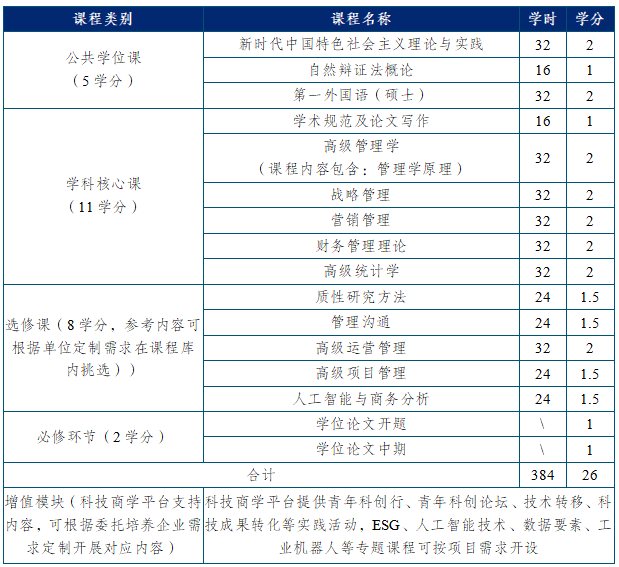 立足内蒙古呼包鄂(呼和浩特、包头、鄂尔多斯)地区产业发展、企业经营与管理人才升级需求,依托哈工大科技商学优势与工商管理学科实力,培养懂科技、善管理、通产业、扎根内蒙古的高层次复合型企业管理人才。